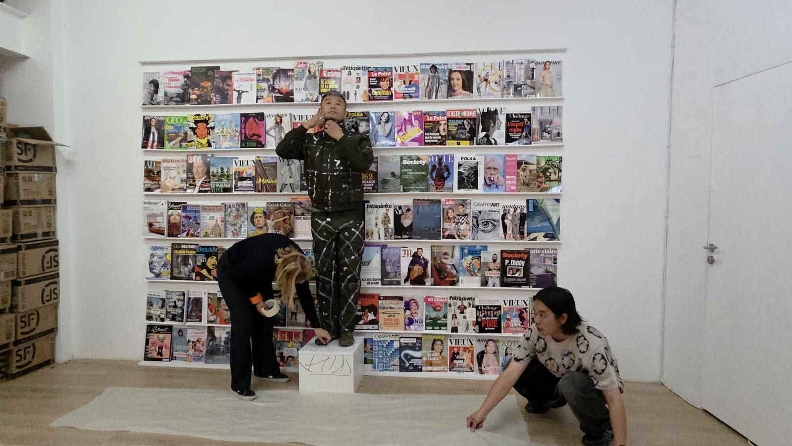 This exhibition brings together the themes that are close to him: Chinese tradition, consumer society, the media, and freedom of the press. He even created a new exceptional work in Paris: Hiding in Magazines, resulting from a performance with invited collectors, where the artist continues to explore the relationship between image, media communication, and invisibility. The project, kept secret during its creation, is revealed in the exhibition, where visitors can discover the painted costumes, the magazine set, and even a behind-the-scenes video. Liu Bolin unveils the mysterious side of performance art.