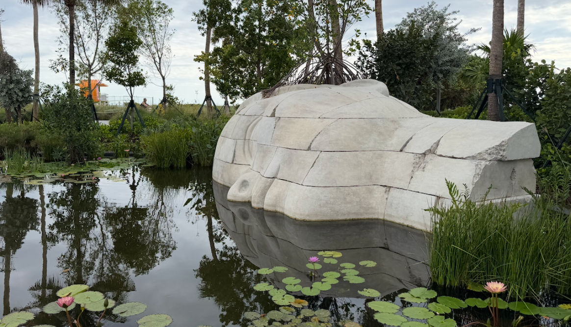 Positioned along Miami Beach’s vibrant oceanfront, Reflection transforms public space into a contemplative place of reflection and remembrance. By blending sculpture, landscape and historical narrative, the work invites visitors to pause — to see what is visible as well as what lies beneath the surface.